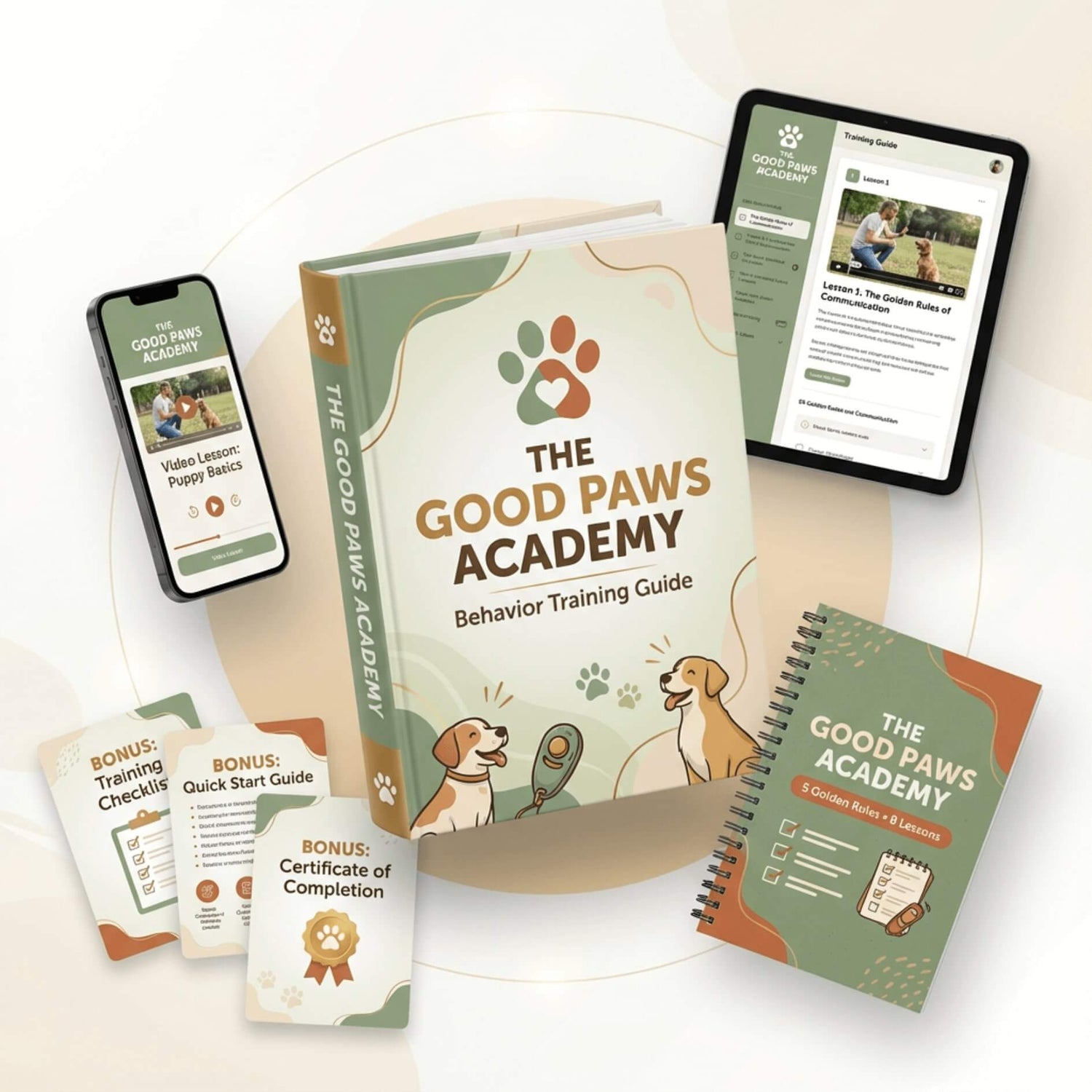 No fancy gear, shock collars, or gimmicks. Everything in The Good Paws Bundle is based on positive, science-backed methods using what you already have — your time, your consistency, and your dog’s favorite rewards.